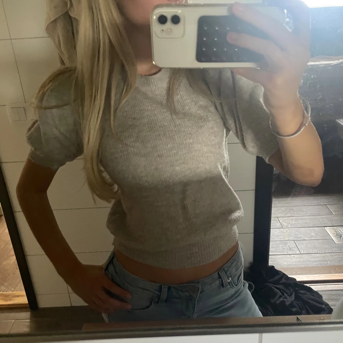 Superfin beige stickad topp från Vero Moda med kort puffärm och rund hals. Modellen är croppad och har ribbade kanter vid ärmslut och nederkant. Perfekt för dig som gillar en enkel men trendig look.