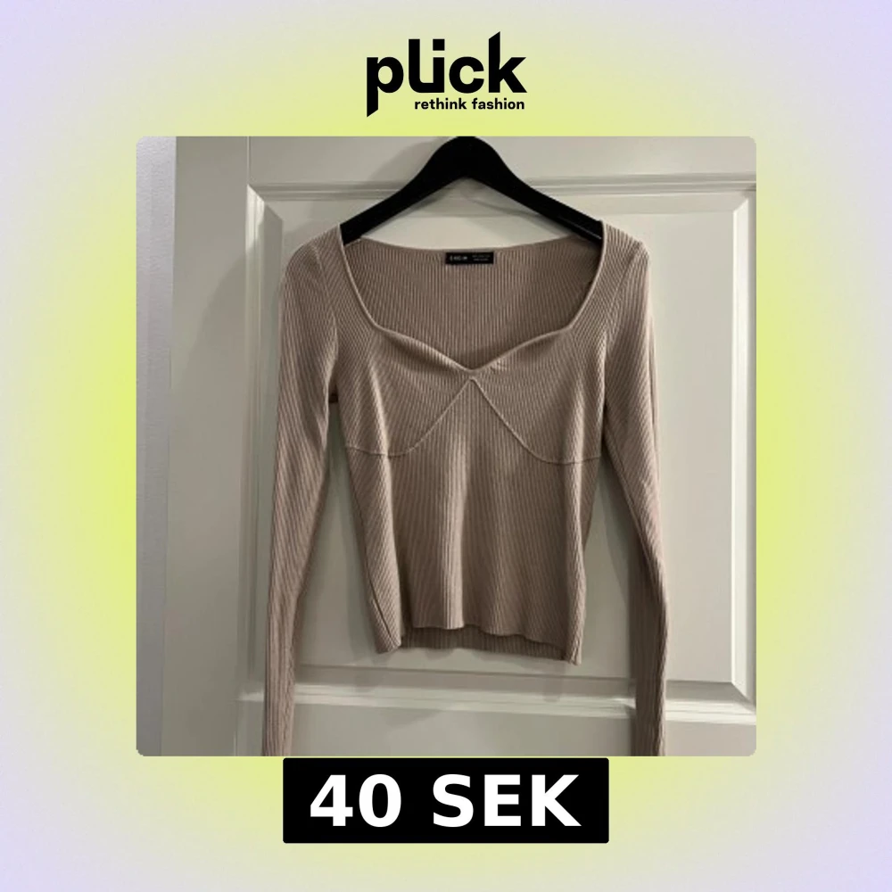 Säljer en beige ribbad topp från SHEIN i storlek S. Toppen har lång ärm, croppad passform och snygg v-ringad hals med markerade sömmar framtill. Materialet är mjukt och stretchigt, perfekt för att styla med jeans eller kjol. Toppen är helt oanvänd