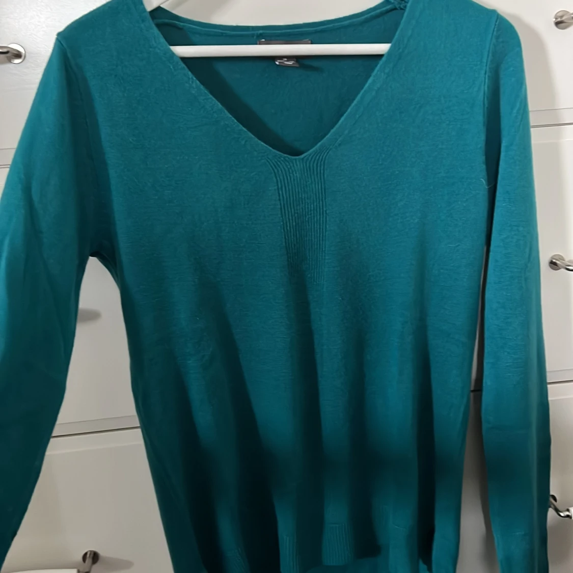 Stickad v-ringad tröja i storlek xs men med lös passform.