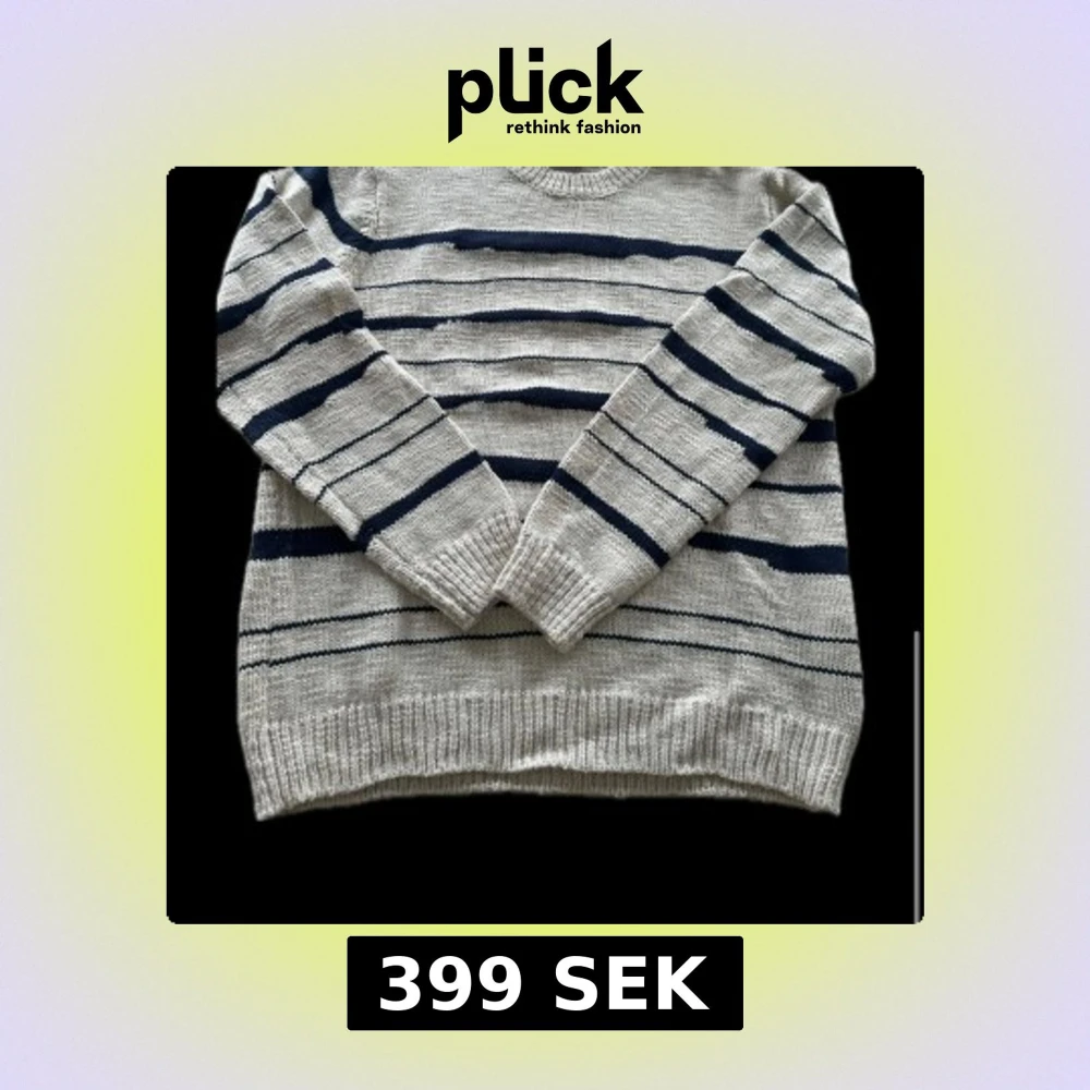 Säljer en snygg beige tröja med marinblå ränder från Casual Friday. Tröjan är stickad och har en klassisk rund halsringning. Perfekt för en stilren och avslappnad look.