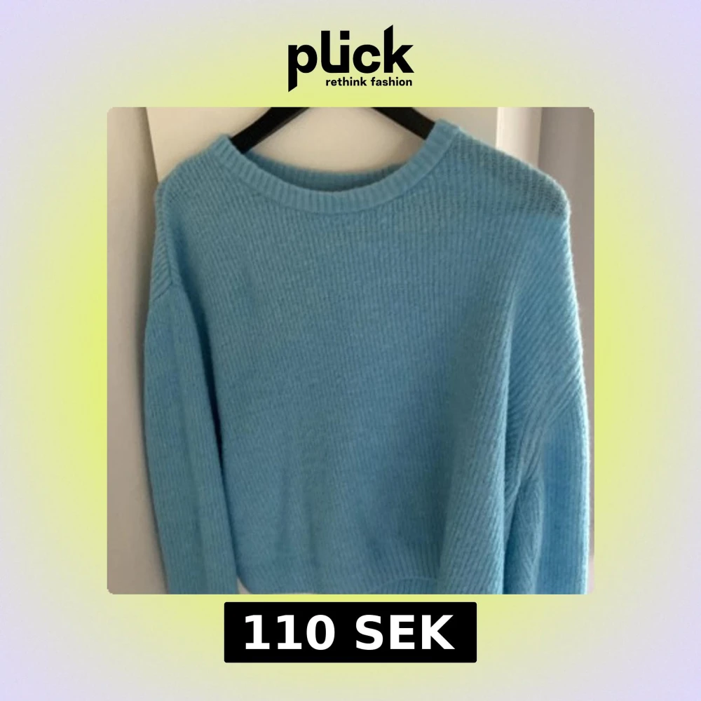 Superfin ljusblå stickad tröja i mjukt material med rund hals och långa ärmar. Enkel, ribbad struktur, både mysig och stilren! Perfekt till jeans eller kjol under kyliga dagar. Sitter perfekt oversized på XS/S🩵