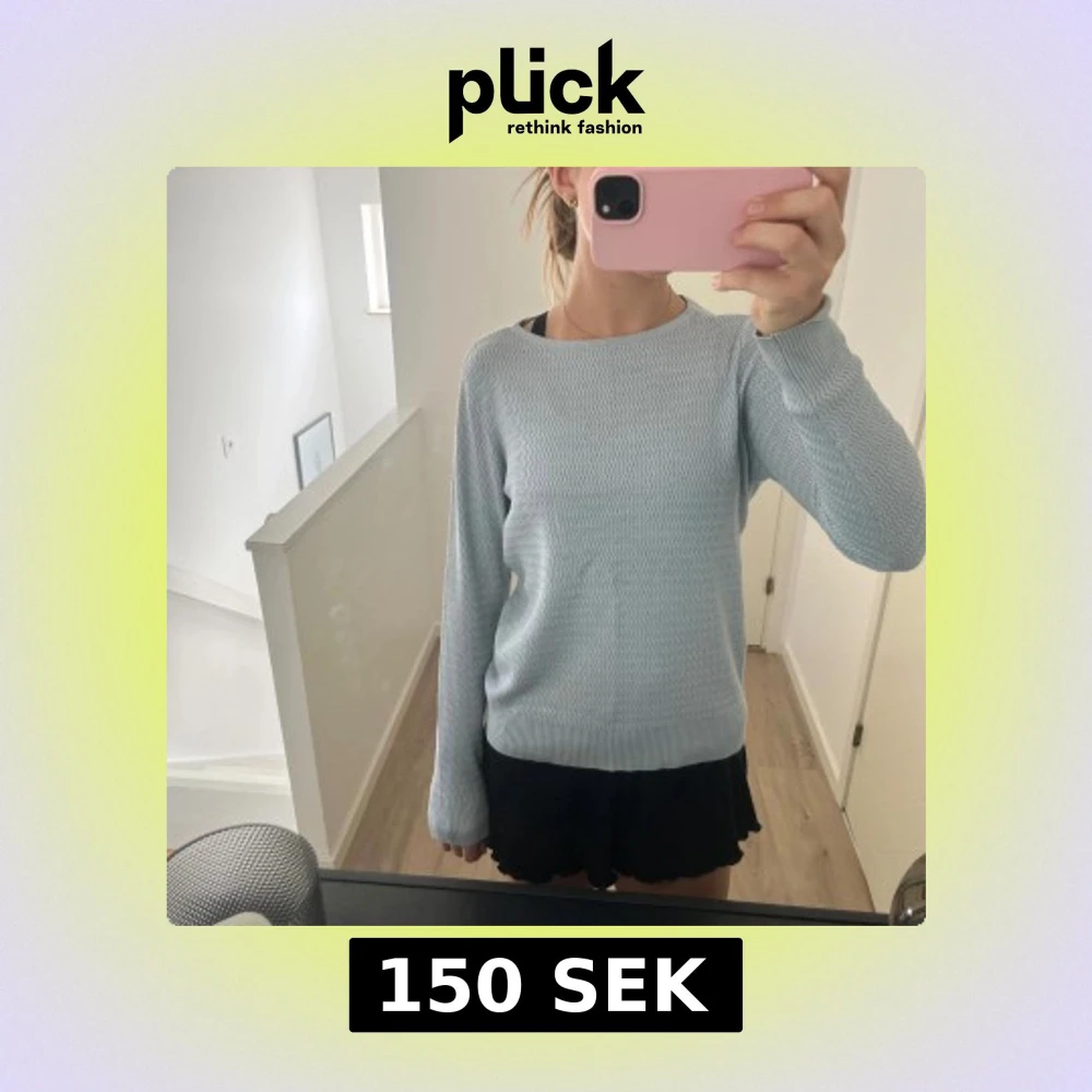 Superskön ljusblå tröja från Stockh LM i storlek S. Tröjan har ett vågigt mönster över hela ytan, rund halsringning och långa ärmar. Perfekt för dig som gillar enkel men snygg stil och vill ha något som funkar till jeans eller kjol. Super fin tröja!
