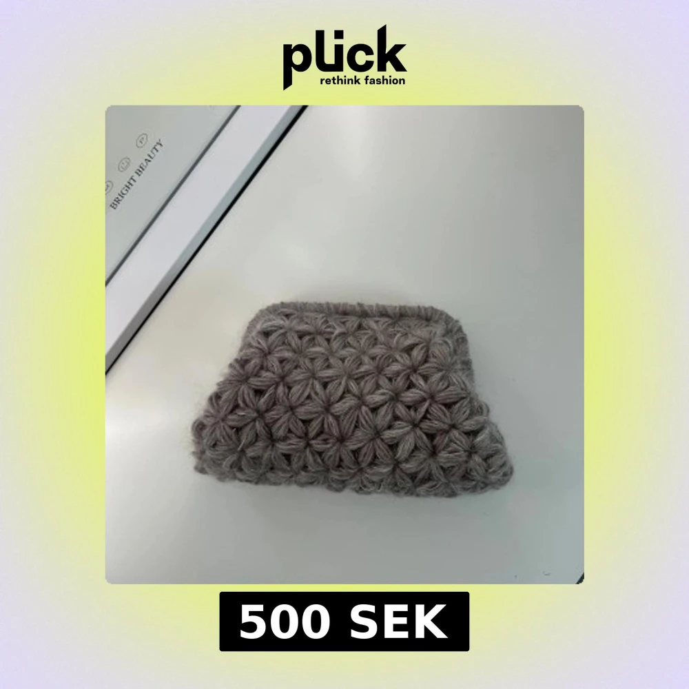 Superfin grå/beige egen virkad clutch i blomm mönster. Perfekt nu till hösten.