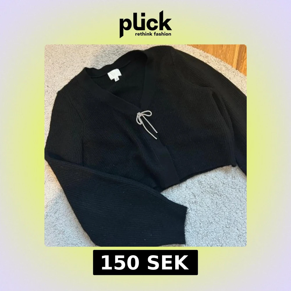 Svart croppad kofta från H&M med v-ringning och lång ärm. Koftan har en söt snörning framtill och är stickad i ett mjukt material. Perfekt för lager-på-lager och chill dagar.