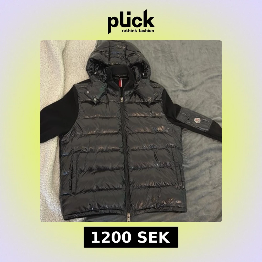 Snygg svart dunväst från Moncler med glansig finish, avtagbar huva och dragkedja framtill. Västen har ribbstickade svarta ärmar och en ikonisk Moncler-logga på ärmfickan. Perfekt för lager-på-lager och streetstyle.