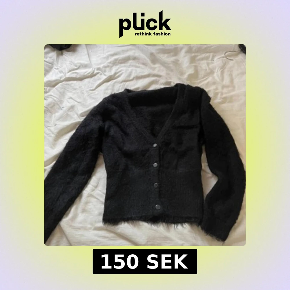 Mysig svart kofta från Vero Moda i storlek S. Koftan är stickad med fluffig känsla, har v-ringning och knäpps med svarta knappar framtill. Perfekt för lager-på-lager och passar till många olika outfits.