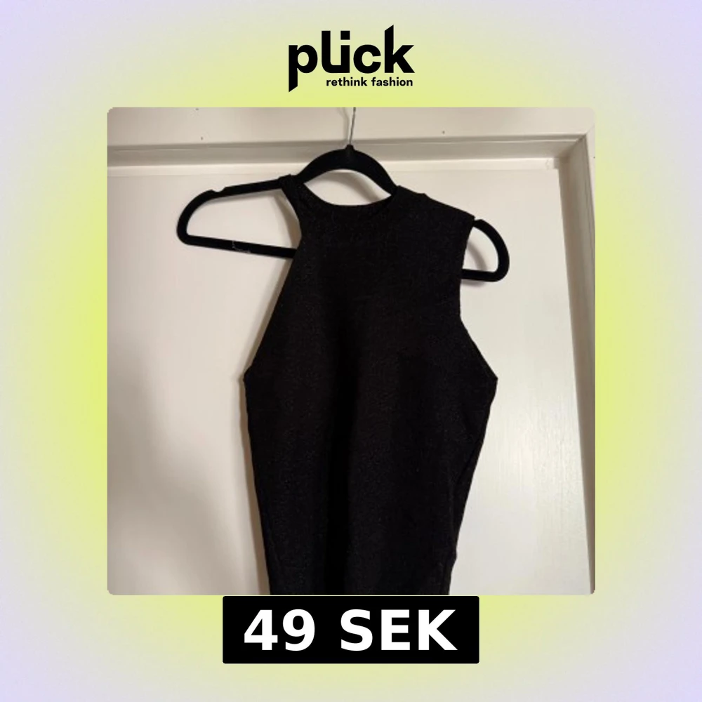 Snygg svart ärmlös topp från NA-KD med glittriga detaljer. Toppen har hög halsringning och är stickad i ett stretchigt material som sitter tight. Perfekt för dig som vill sticka ut lite extra med en stilren men ändå festlig look.