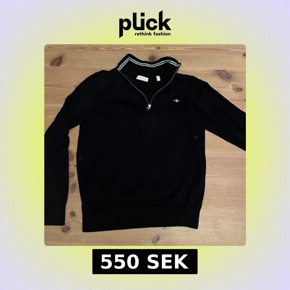Svart långärmad tröja från GANT med half zip och ribbad krage med gråa ränder. Broderad GANT-logga på. Helt ny utan prislapp aldrig andvänd, nypris är drygt 700. Hör av er vid frågor mvh Victor