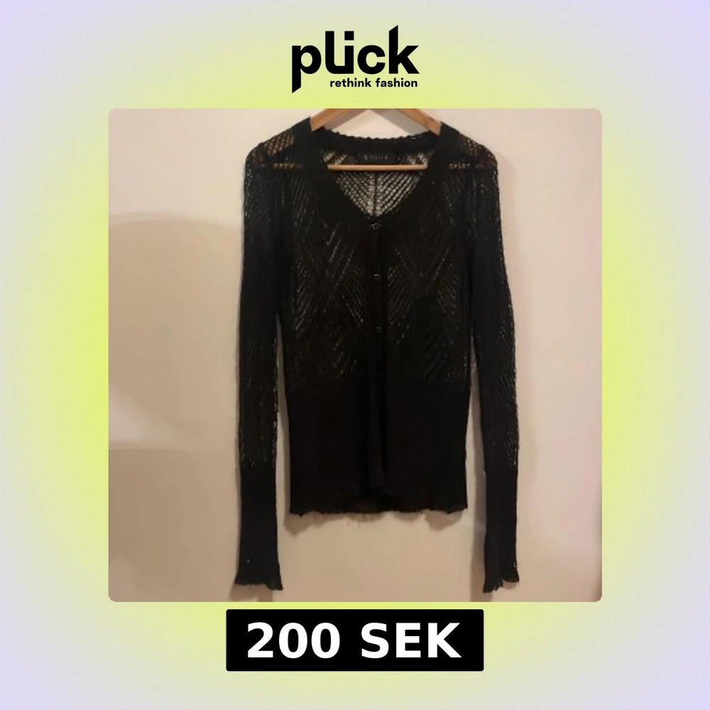Säljer en svart, transparent och stickad kofta från Tiger of Sweden. Koftan har ett snyggt mönster, knappar framtill och är långärmad. Materialet är en mix av mohair, nylon och akryl vilket gör den både lätt och fluffig. Perfekt för lager-på-lager-stil.
