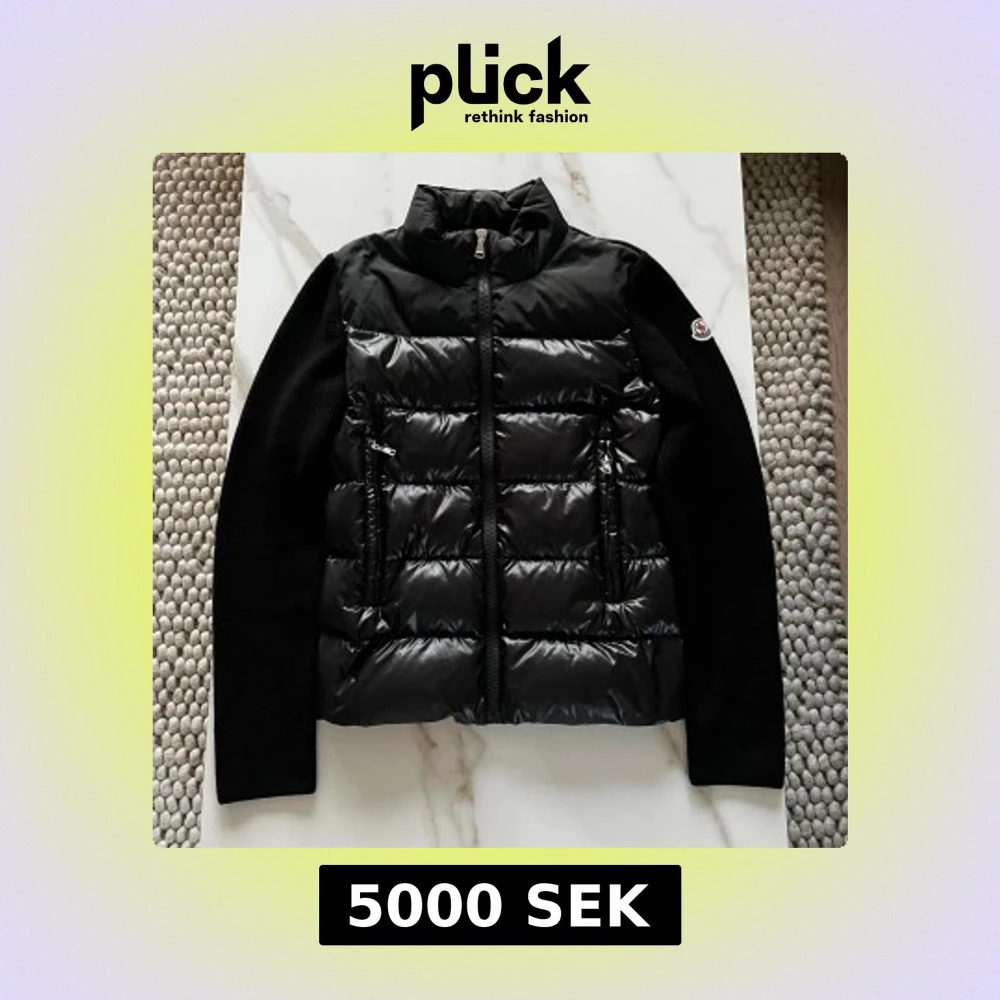 Säljer en äkta svart cardigan jacka från Moncler med pufferfront och stickade ärmar. Jackan har dragkedja framtill, två sidofickor med dragkedja och Moncler-logga på vänster ärm. Snygg, slim passform och hög krage för extra stilpoäng.