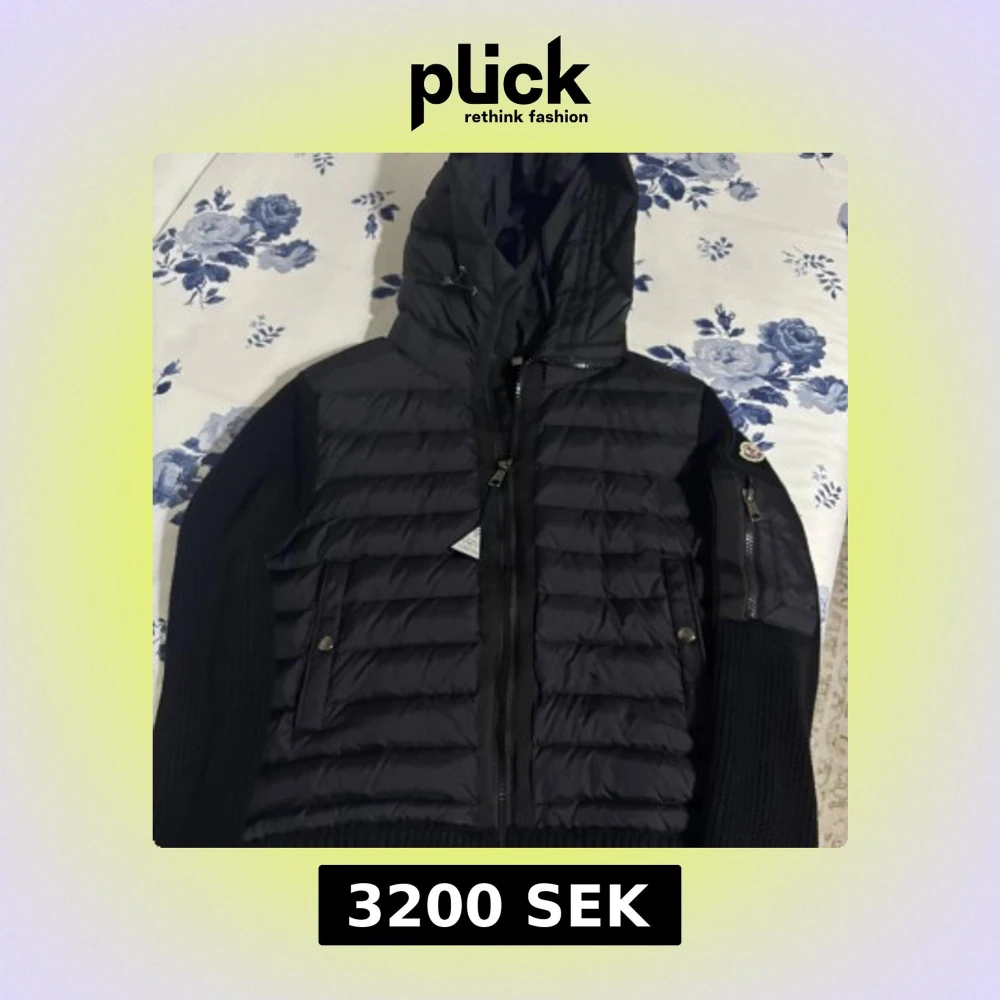 Svart pufferjacka från Moncler med stickade ärmar och quiltad front. Storlek S och den är väldigt skön. Passar de som har XS samtidigt också ! Pris kan diskuteras!