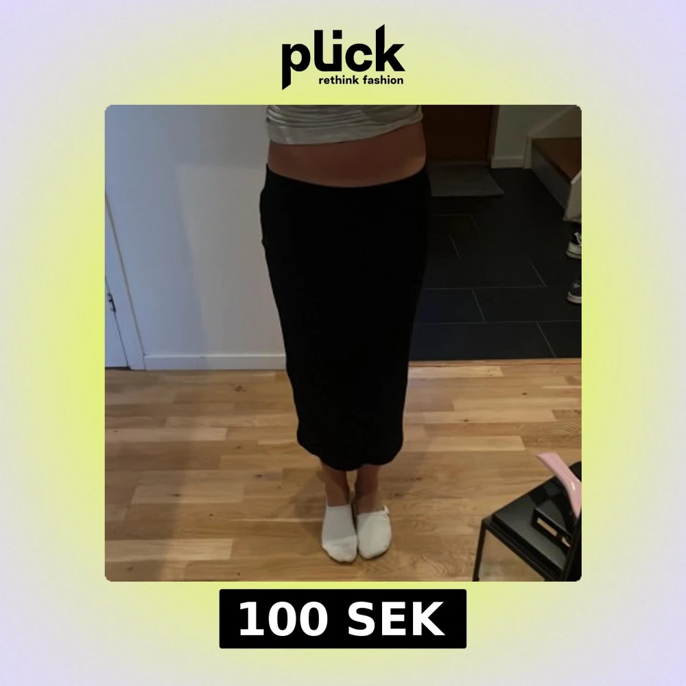 Säljer en svart långkjol med ribbad struktur och en snygg slits baktill. Kjolen har en rak passform och är gjord i ett mjukt stickat material som sitter skönt i midjan. Perfekt för dig som gillar stilrena och enkla plagg med lite edge.