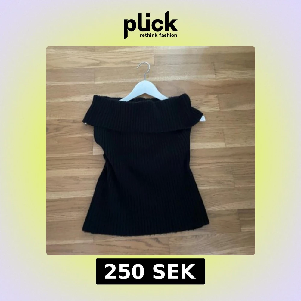 Svart ribbad offshoulder stickad topp