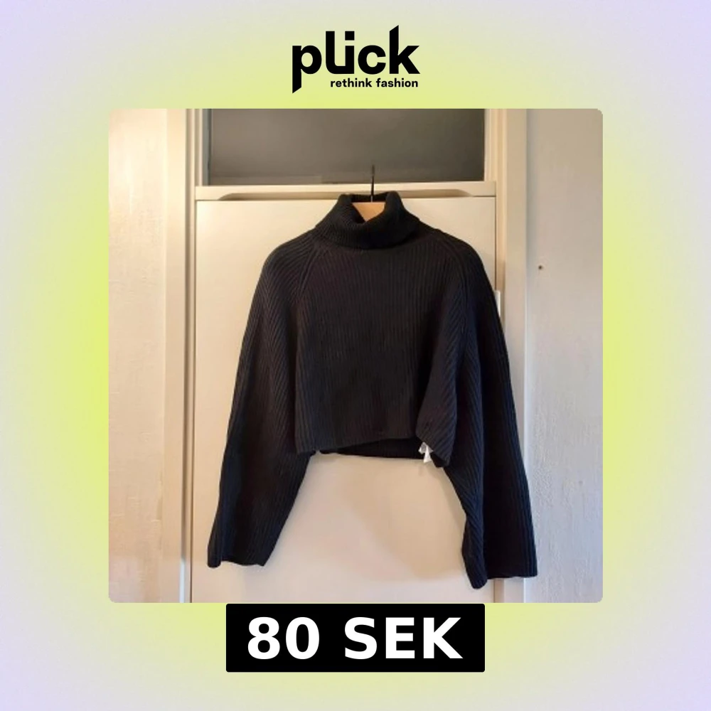 Snygg svart ribbad polotröja från BikBok i croppad modell. St S men har en oversized passform. Perfekt för kyliga dagar med sin höga krage och långa ärmar. Tröjan har en modern och stilren design som passar till många olika outfits.