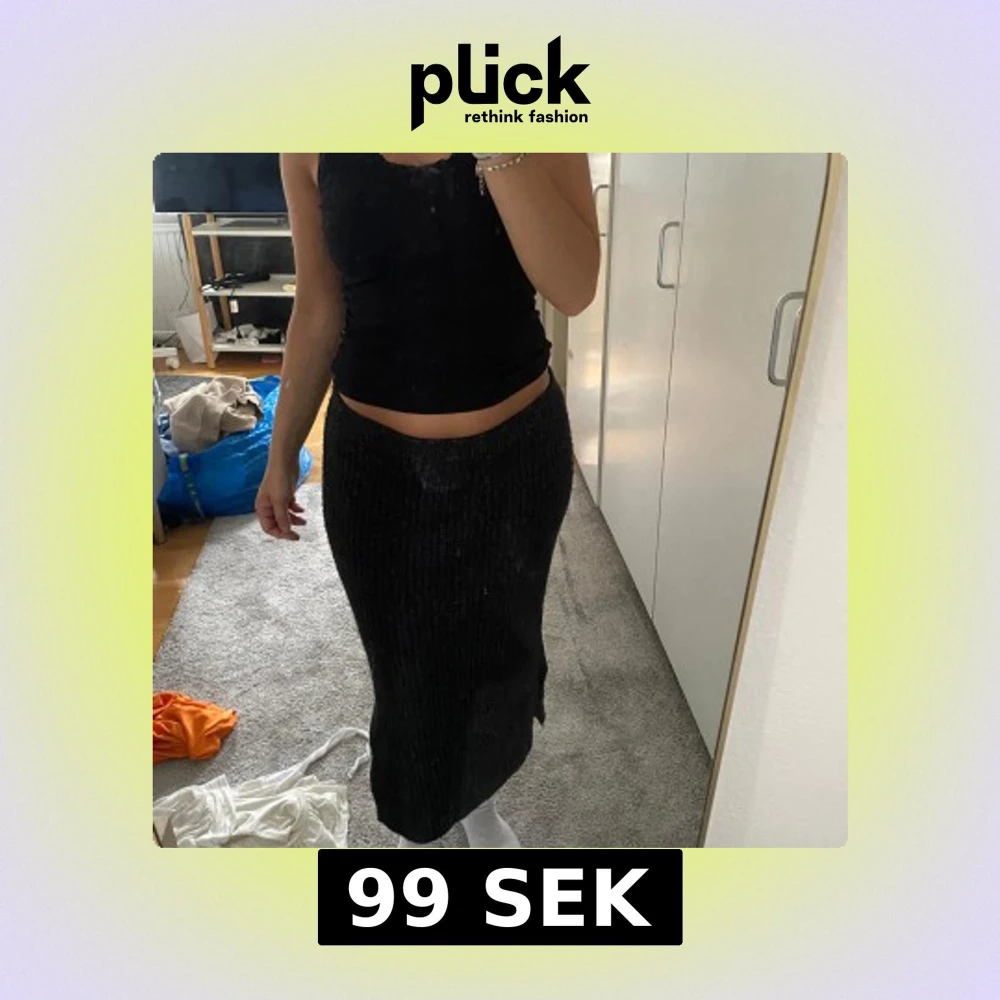 Säljer en svart ribbad stickad långkjol med slits på sidan. Kjolen är mjuk och följsam, perfekt för dig som gillar en chill och snygg look. Den har en rak passform och är superenkel att matcha med både crop tops och hoodies.