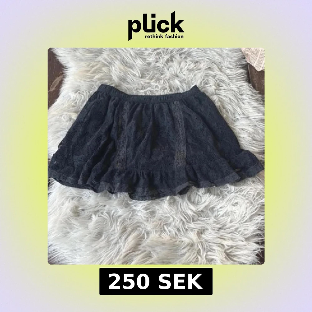 Supersöt svart kortkjol från Abercrombie & Fitch med volangkant och detaljer i spets. Kjolen har elastisk midja och ett fint blommigt spetsmönster som ger en romantisk vibe. Perfekt att styla med en enkel topp eller stickad tröja. Endast swish betalning nuläget skickas spårbart 59kr