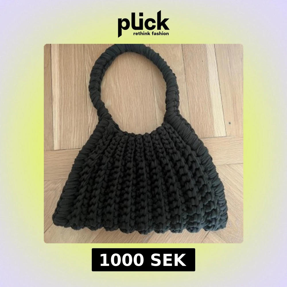Säljer en svart stickad axelväska från OMA. Väskan har ett unikt, grovstickat mönster och ett mjukt, vadderat handtag som gör den bekväm att bära. Perfekt för dig som vill ha en trendig accessoar med personlig touch.