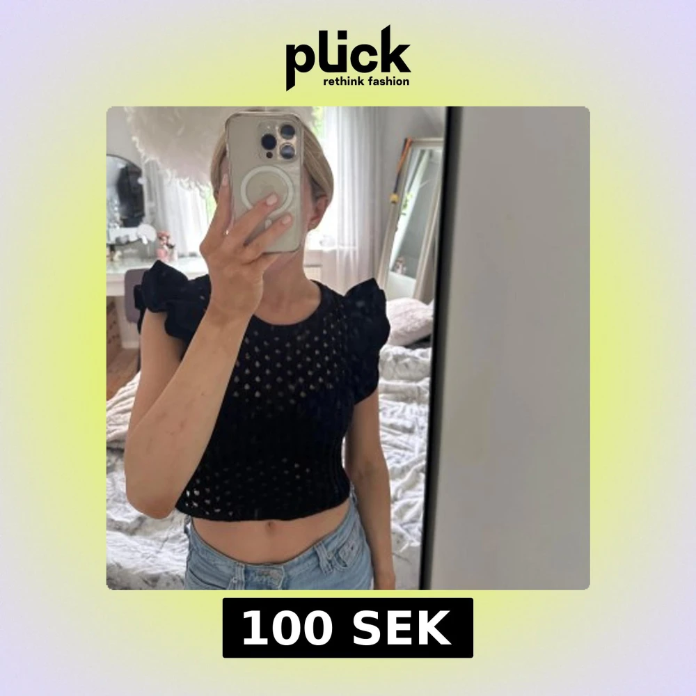 Svart stickad croppad topp från Zara med volangdetaljer på axlarna. Fint skick, knappast använd, strl S, 100kr+frakt🤍
