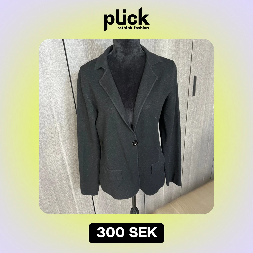 Snygg svart stickad kavaj i klassisk stil med en knapp framtill. Perfekt för både vardag och fest. Den har långa ärmar och två fickor fram. Passar bra till höst och vår.