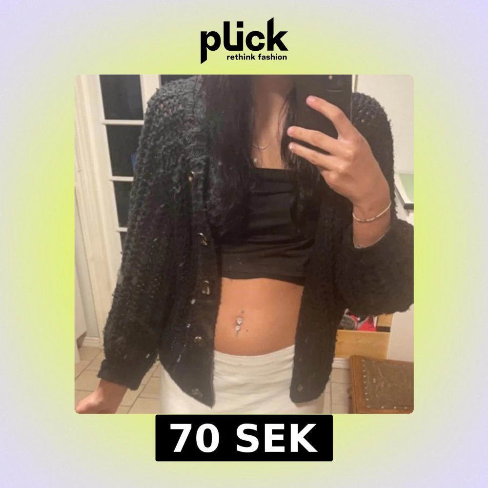 Säljer en svart stickad kofta från Pieces med knappar framtill. Koftan har en fin struktur och är perfekt för lager-på-lager-stil. Passar bra till både jeans och kjol. Perfekt för kyligare dagar!