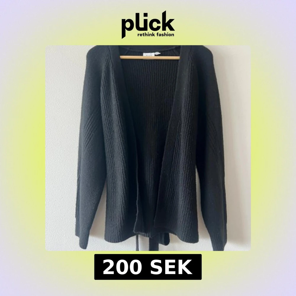 Svart stickad kofta från Vila med långa ärmar och snygg ribbad struktur. Koftan har öppen front och knytband i midjan för en extra cool detalj. Perfekt att slänga på sig när det är lite kyligt ute. Använd en gång