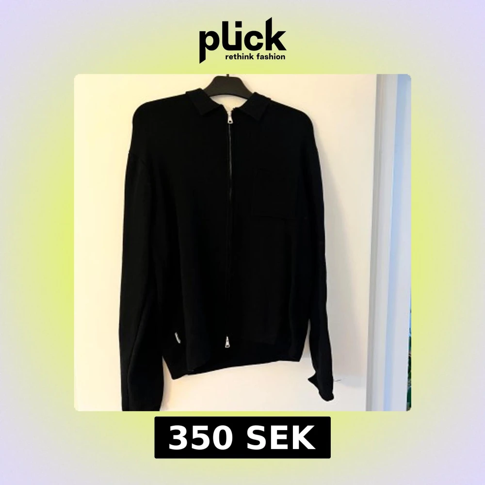 Svart stickad overshirt från Studio Total i storlek M. Jackan har klassisk krage, dragkedja framtill och en bröstficka. Perfekt för lager-på-lager och enkel att matcha med allt. Långärmad och i mjukt material som känns skönt mot huden.