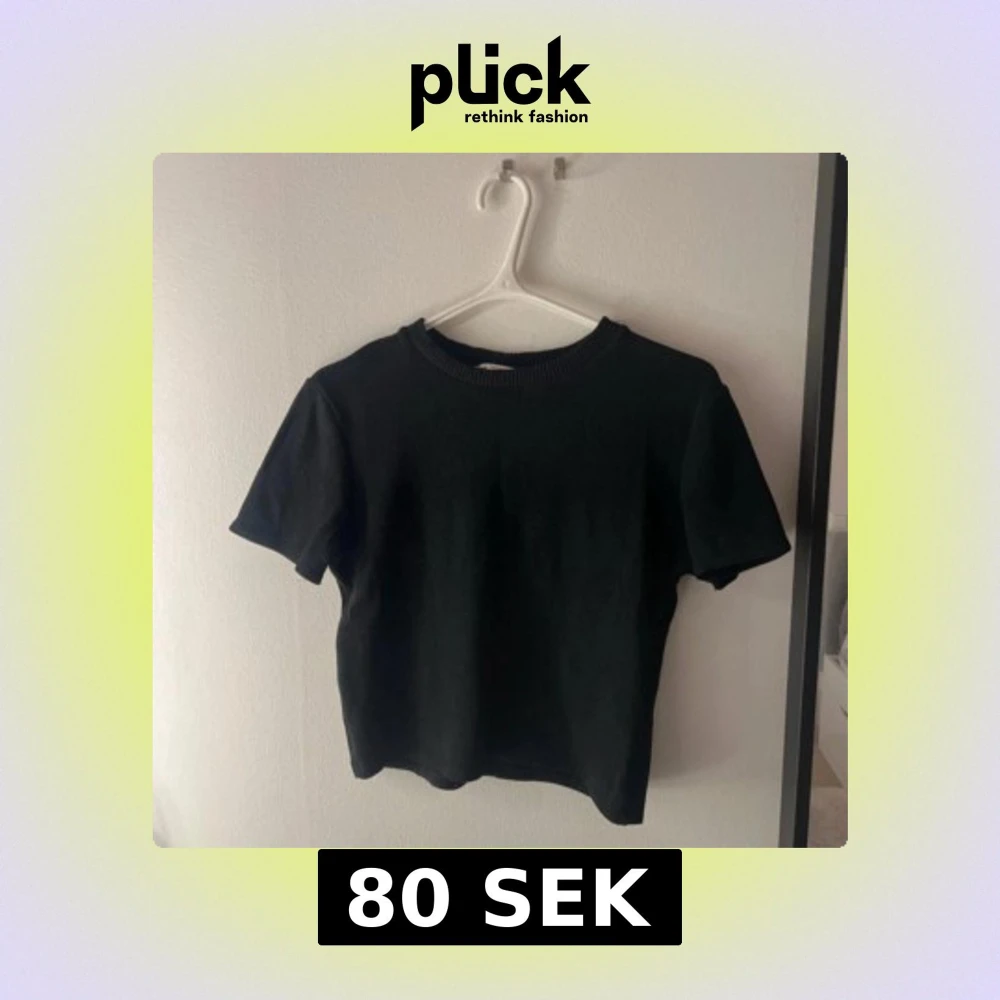 En svart stickad topp med rund hals och korta ärmar. Enkel och stilren design som funkar till många olika looks. Ribbad kant vid halsen ger en snygg detalj. Perfekt för dig som gillar basic men ändå vill ha något som sticker ut lite.