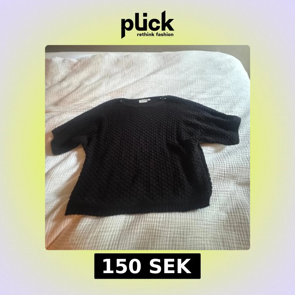 Svart stickad topp från Filippa K med kort ärm och snyggt hålmönster. Modellen är loose fit och har en rund halsringning. Perfekt att styla med jeans eller kjol för en chill look.