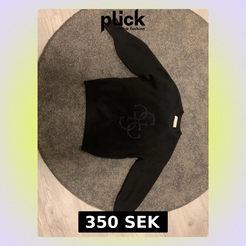 Svart stickad tröja från Guess i storlek XS med stor, glittrig Guess-logga framtill. Tröjan har rund hals och långa ärmar, perfekt för dig som gillar stilrena och snygga plagg med en touch av branding. Materialet är mjukt och skönt och är lite tungt, vilket känns lyxigt. Nypris är någonstans över 1000 lappen, Inga defekter och i väldigt fint skick. Hör av dig vid frågor, pris går att diskutera💕