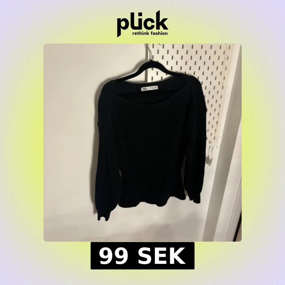 Snygg svart stickad tröja från Zara med långa ärmar och ribbade detaljer på axlarna. Perfekt för kyligare dagar och enkel att matcha med olika outfits.