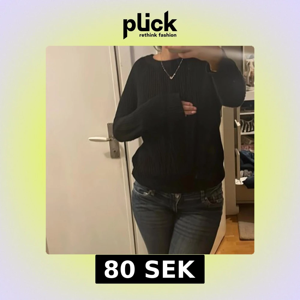 Mysig svart stickad tröja med ribbad struktur och rund halsringning. Tröjan har långa ärmar och en relaxed passform som gör den perfekt för kyligare dagar. Enkel och stilren design som passar till det mesta.
