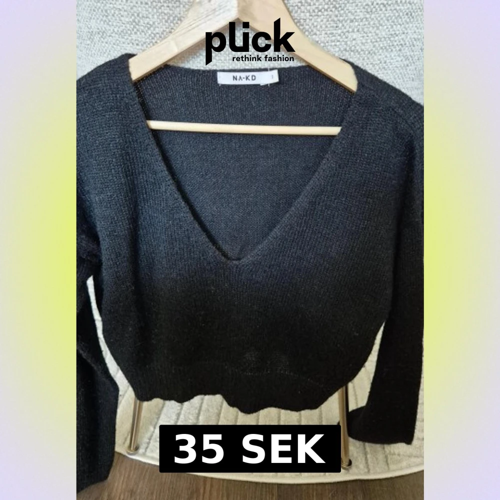 Svart stickad tröja från NA-KD med djup v-ringning och lång ärm. Tröjan är mjuk och har en loose passform, perfekt för lager-på-lager. Materialet är 80% akryl och 20% polyamid, vilket gör den lätt och skön att bära. Kortare modell.