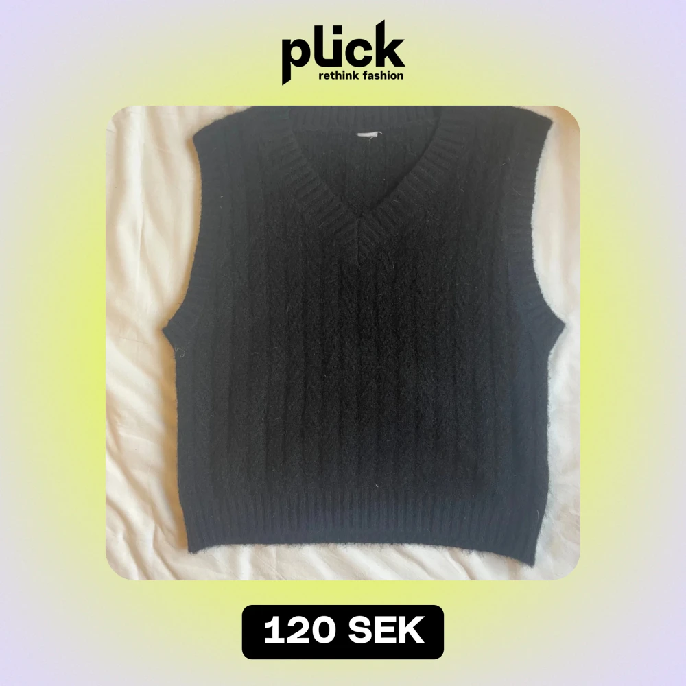 Säljer en snygg svart stickad väst i mycket bra skick. Den har en v-ringad design och ribbade kanter som ger en stilren look. Perfekt för höst och vinter, och kan enkelt matchas med olika outfits. Den är i stl 158/164 fast funkar även som S! 💓💓