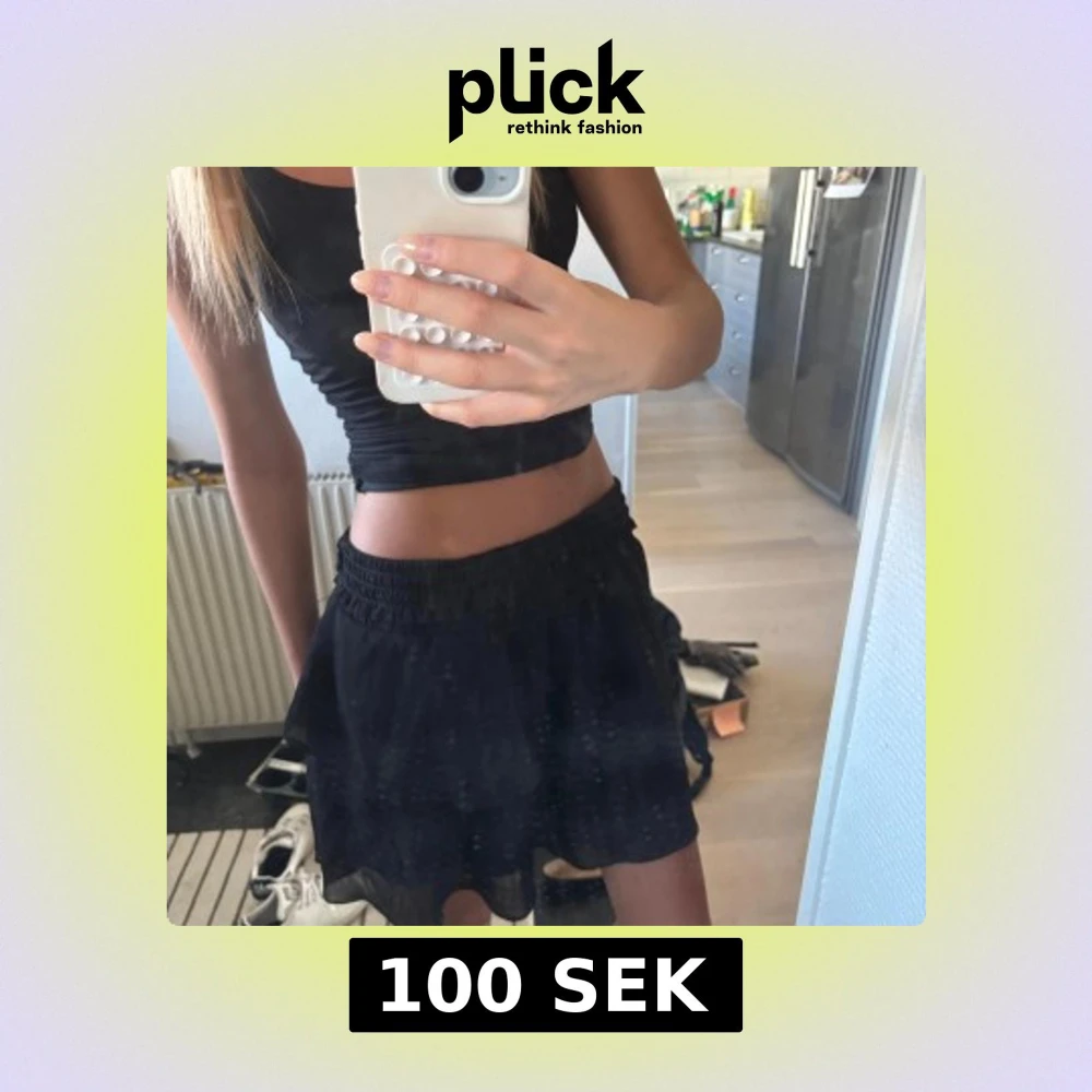 Svart kjol med elastisk midja och volangig nederkant från Chelsea! Går att vika ner resåren för en lågmidjad look! Köpt för 399kr ❣️Perfekt att matcha med en stickad tröja eller en topp!