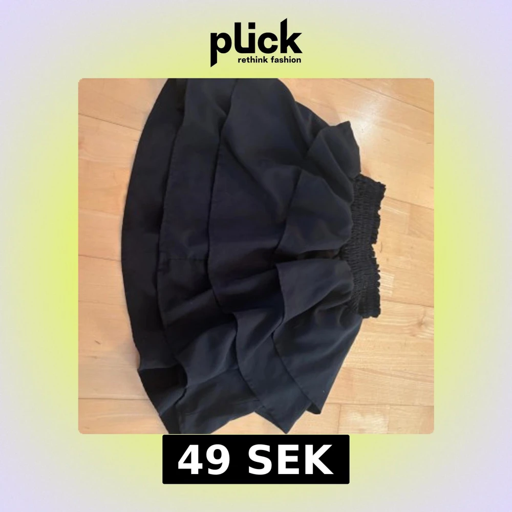 Säljer en svart kort volangkjol från H&M med bred resår i midjan. Kjolen har flera lager volanger som ger en snygg och puffig siluett. Perfekt att styla med en enkel topp eller stickad tröja. Supersöt! Den är i storlek 145/512, men skulle säga att den passar som xs-xxs. ALLTID 10% RABATT NÄR DU KÖPER 2 PLAGG ELLER FLER💗🫶!!!