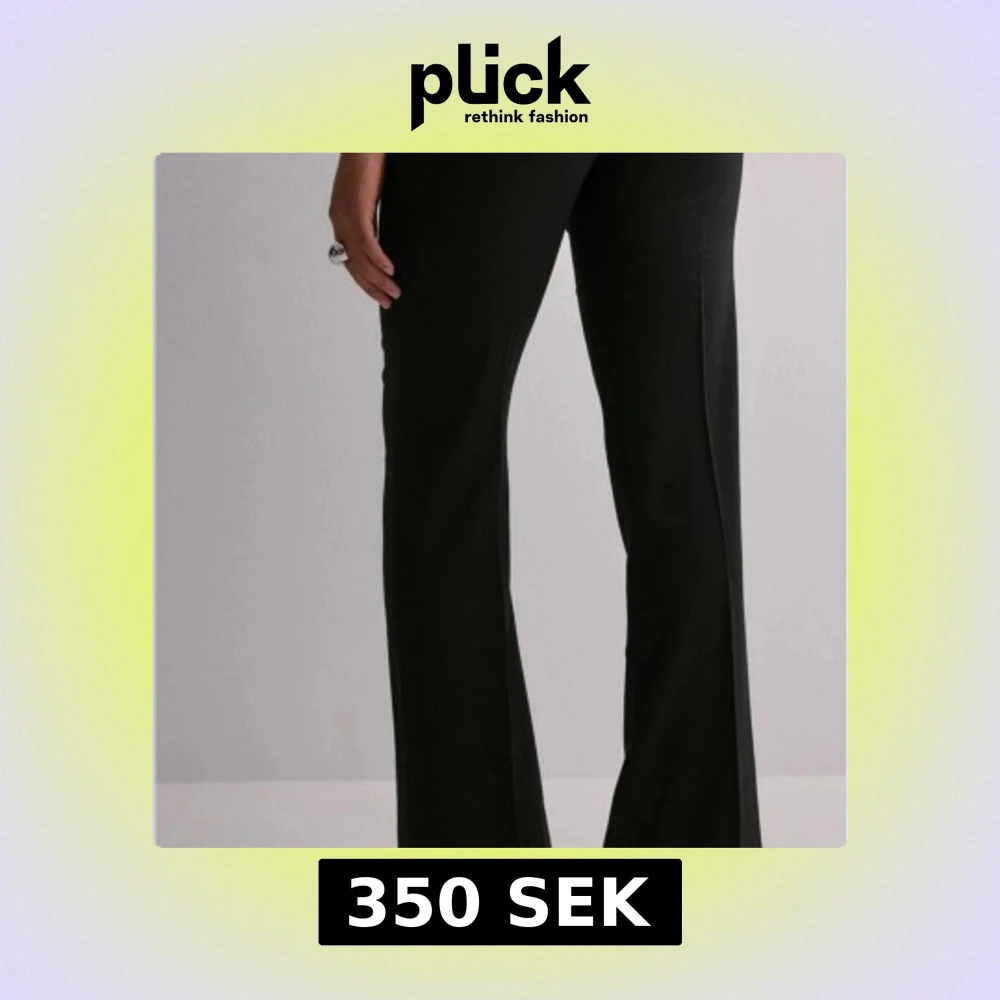 Snygga svarta kostymbyxor med bootcut passform och low midja. Byxorna har en klassisk look med raka ben som blir vidare nedtill. Perfekta att styla med en stickad tröja eller skjorta för en clean vibe. Knappt använda