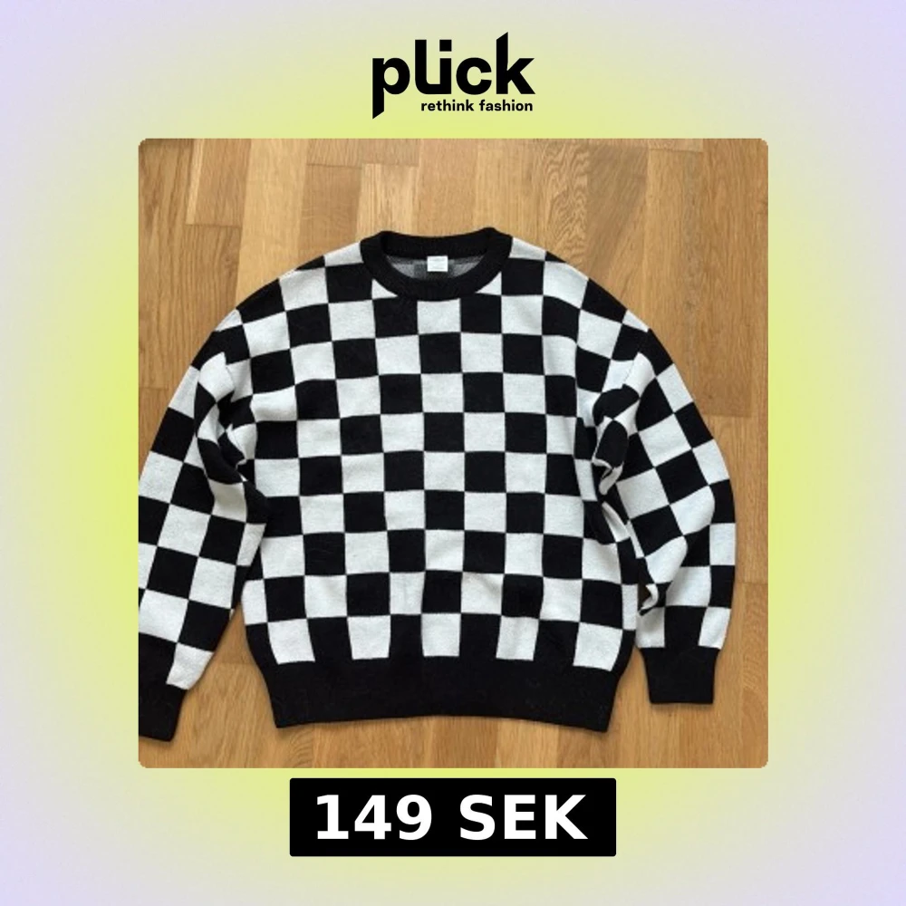 Snygg stickad tröja från Lindex i storlek 146/152. Tröjan har ett coolt svartvitt rutigt mönster, rund halsringning och långa ärmar. Perfekt för dig som gillar streetstyle och vill sticka ut lite extra.