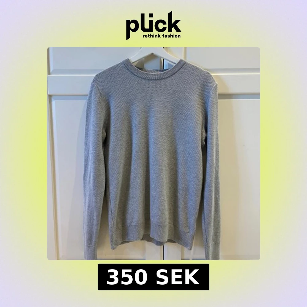Säljer en stilren grå stickad tröja från Cubus i storlek S. Tröjan har rund hals, ribbade muddar och ett diskret, strukturerat stickat mönster. Perfekt för dig som gillar enkel och clean look med långärmad passform.