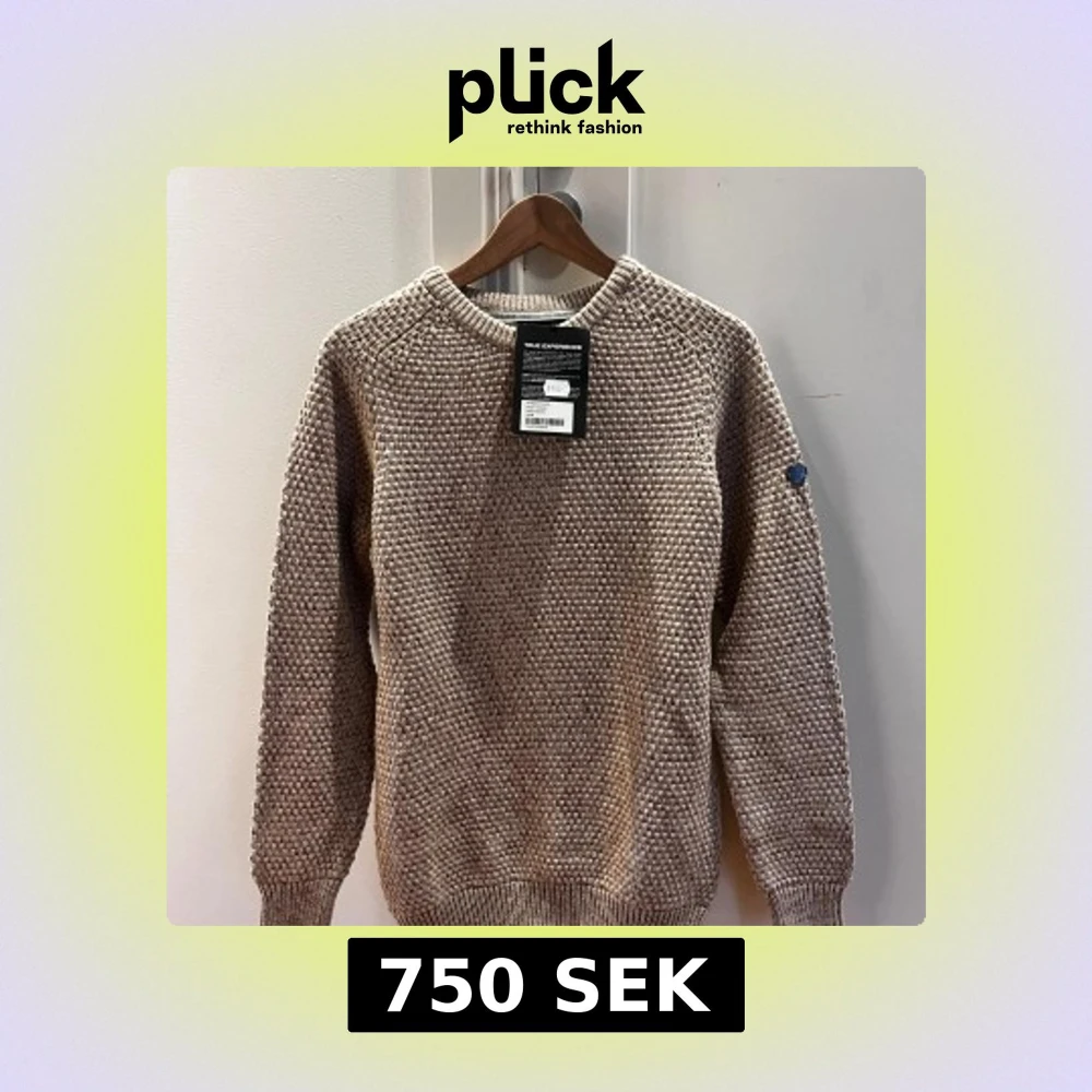 Säljer en stilren beige stickad tröja från Pelle P. Tröjan har en klassisk rund hals och långa ärmar med ribbade muddar. Perfekt för kyligare dagar. Helt oanvänd!Nypris 1100kr