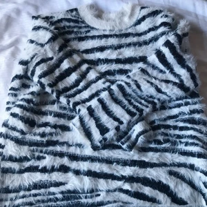 Snygg mönstrad tröja i storlek L. Sitter bra men ovetsized på mig som vanligtvis har S så skulle säga att den passar även dig som har S och M. Aldrig kommit till användning tyvärr.
