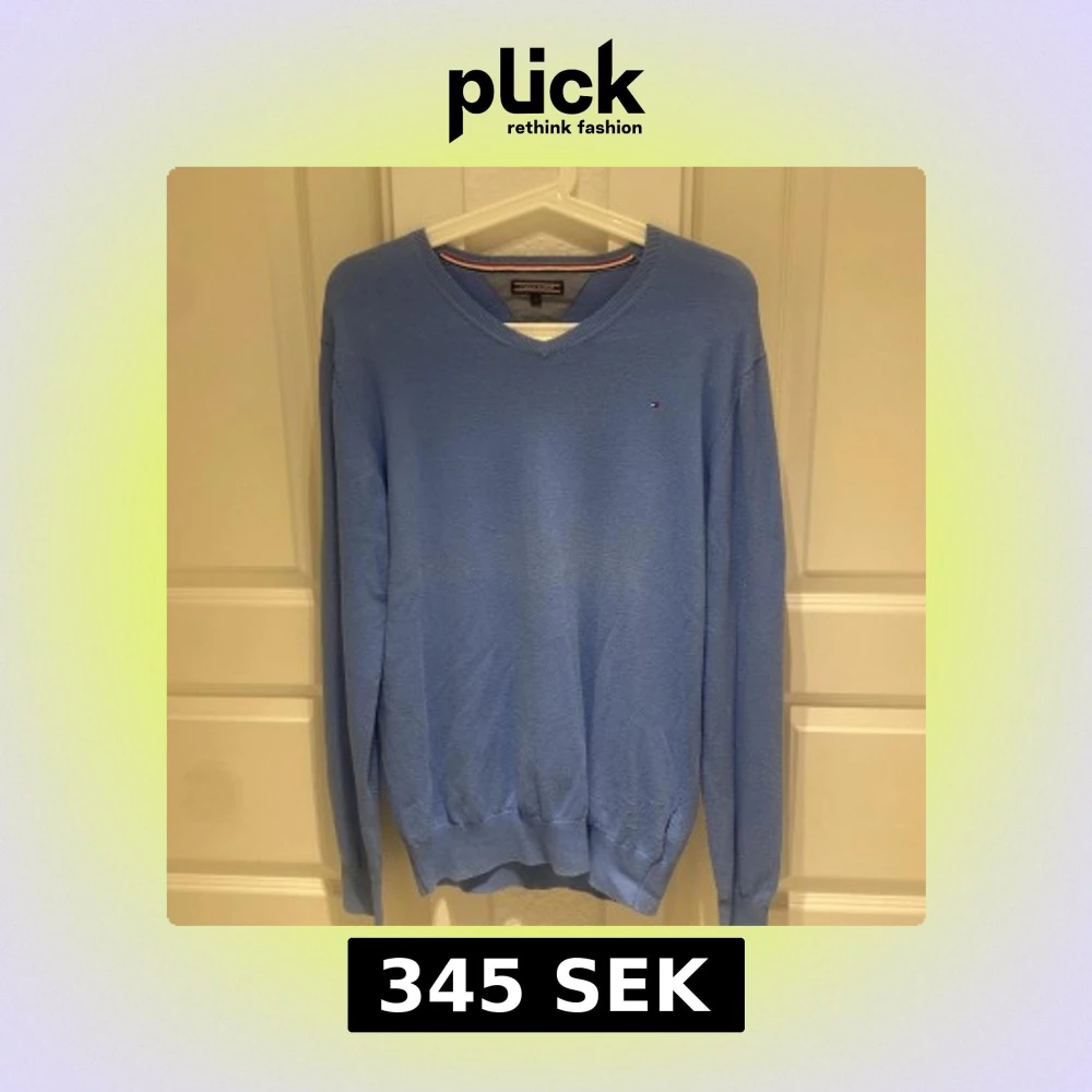 Snygg blå stickad tröja från Tommy Hilfiger med diskret logga på bröstet. Tröjan har v-ringad hals, ribbade muddar och lång ärm. Perfekt för dig som gillar klassisk stil med en modern touch. Passar till jeans eller chinos för en chill look.