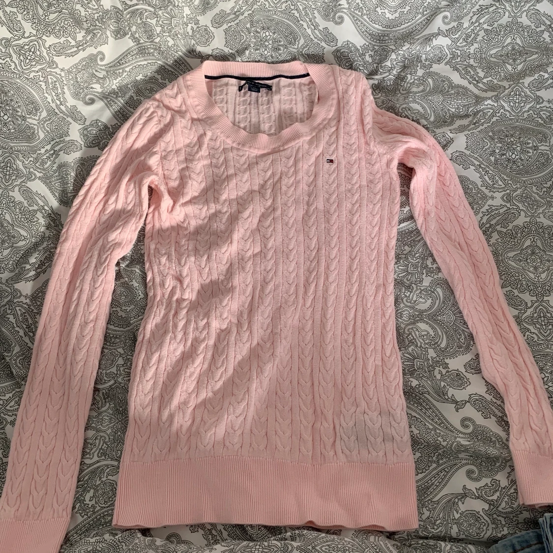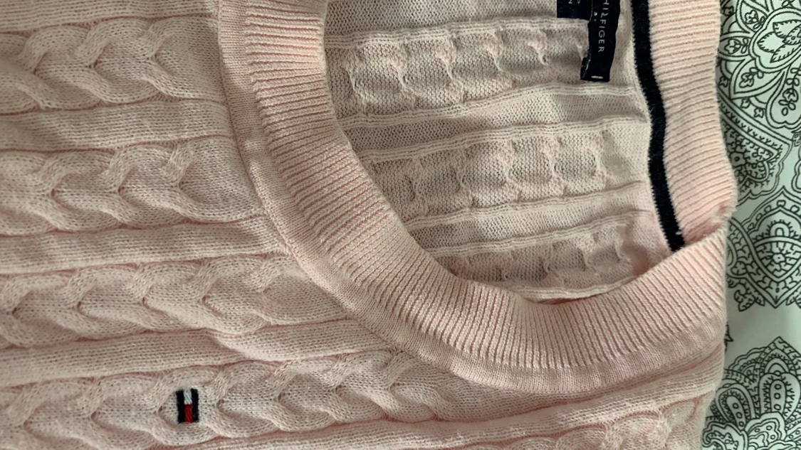 Rosa söt stickad Tommy hilfiger tröja som är helt oanvänd då den var för liten när jag fick den i present. Den är i storlek XS