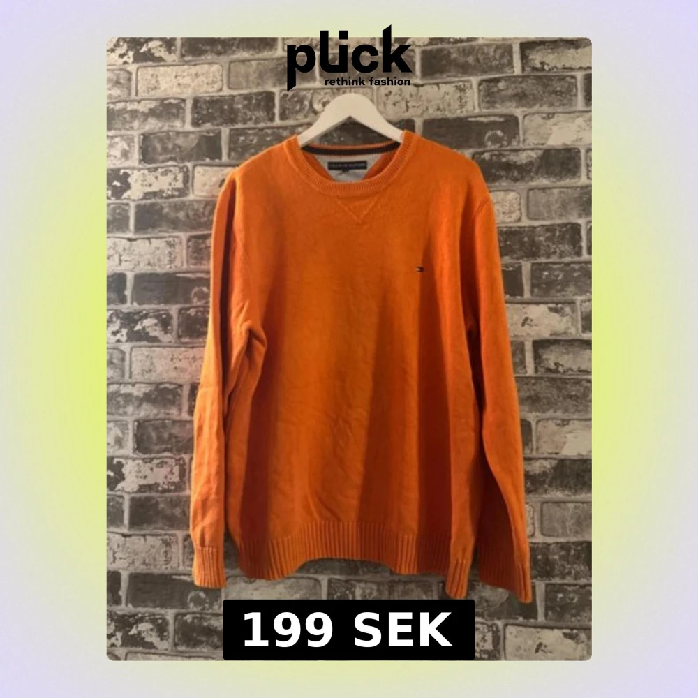 Snygg orange stickad tröja från Tommy Hilfiger i storlek XL. Tröjan har v-ringad hals och klassisk Hilfiger-logga broderad på bröstet. Ribbstickade muddar vid ärmslut och nederkant ger en schysst passform. Perfekt för dig som gillar färg och stil.