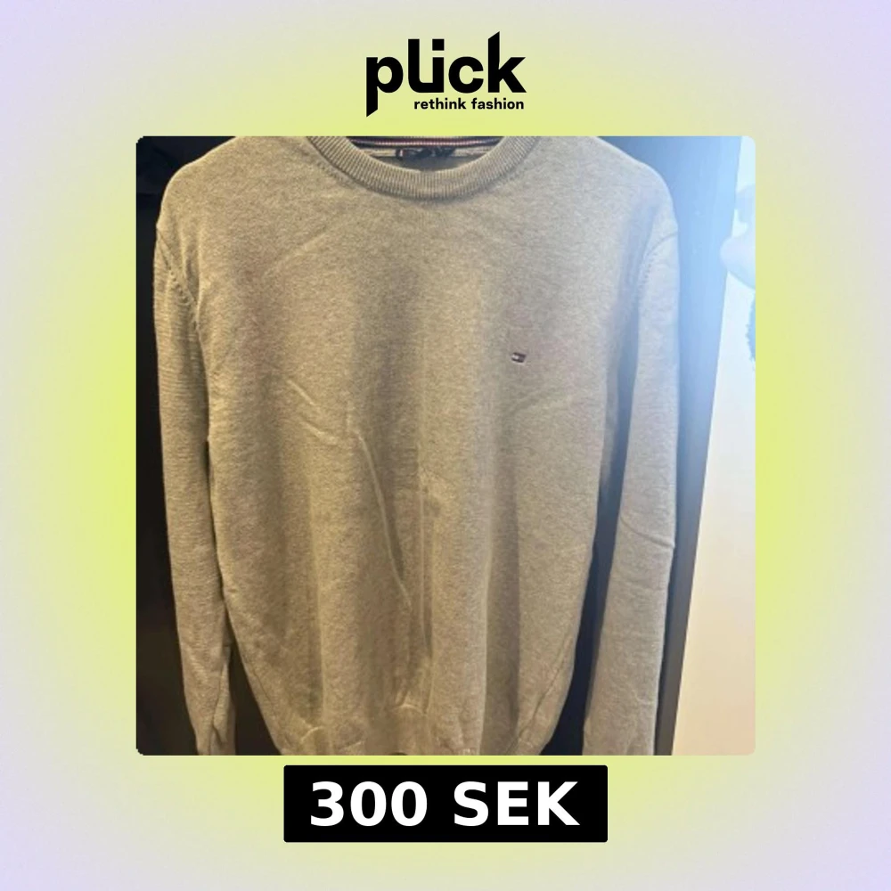 Snygg grå stickad tröja från Tommy Hilfiger med rund halsringning och diskret logga på bröstet. Tröjan har långa ärmar och ribbade muddar vid ärmslut och nederkant. Perfekt för lager-på-lager och enkel att matcha. Oanvänd och ny. Fin till grisch stil