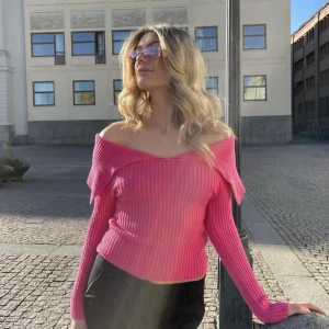En rosa off-shoulder stickad tröja från missäy aldrig använd storlek onesize passar XS-L Köpte för 380kr säljer för 100kr