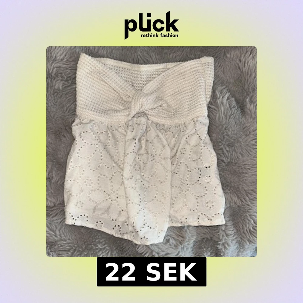 Fin ljusbeige topp med stickat knyte upptill och ett blommigt mönster nedtill. Jättesöt och fin till sommaren