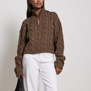 Kabelstickad tröja med nyckelhålsringning