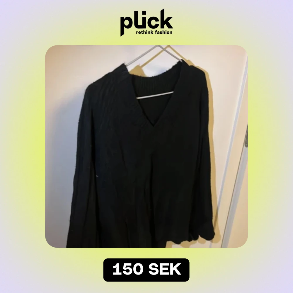 En oanvänd svart stickad tröja, den är ribbad och är v ringad fram till och har breda armar. Den är använd 0 gånger, om det önskas fler bilder kontakta mig!