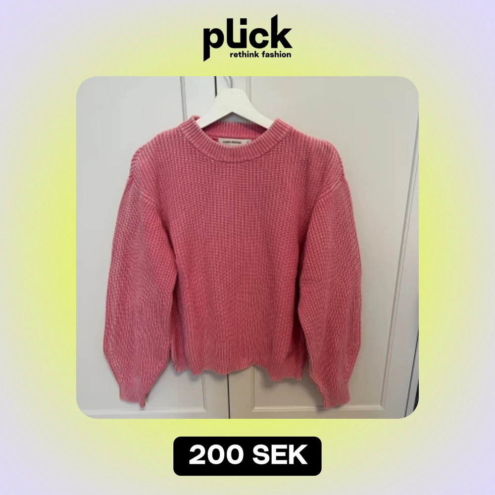 Ribbstickad rosa tröja med sandwash-effekt. Fint skick, inget att anmärka på. Nypris 499kr.