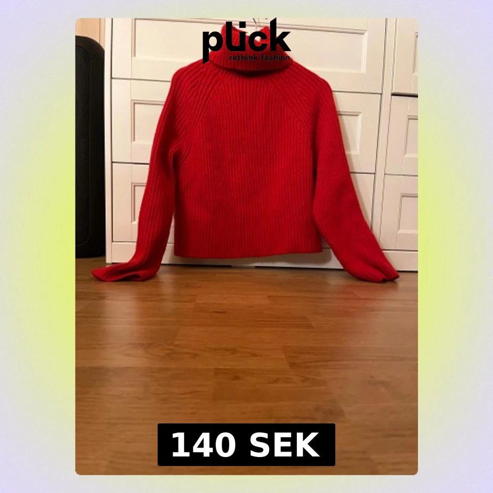 Säljer en snygg röd polotröja med ribbad struktur och lång ärm. Tröjan har en hög krage som går att vika ner och är stickad i ett mjukt material. Perfekt för kyliga dagar när du vill vara både varm och stilren.